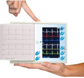 12 kanałowy aparat EKG z kolorowym, dotykowym wyświetlaczem o dużej rozdzielczości, wyposażony w moduły analizy i interpretacji.